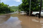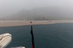 Am Nachmittag nimmt der Wind weiter zu und wir müssen unser Sonnensegel abnehmen. Der Regen hört erst am nächsten Tag auf. Das Wasser in der sonst relativ klaren Bucht hat sich in eine braune Brühe verwandelt. Von den Berghängen stürzen zahlreiche Wasserfälle. Unzählige Kokosnüsse, Zweige und ab und zu ganze Baumstämme werden auf das Meer hinausgetragen.