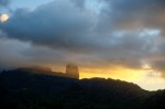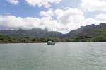 Die kleine Bucht von Hakahau auf Ua Pou ist durch einen noch kleineren Wellenbrecher geschützt. Dahinter liegen schon zwei Segler. Wir versuchen uns auch hinter dem Wellenbrecher zu verstecken, was uns nicht ganz gelingt, und hoffen dass eines der beiden bald ablegt. Nach all den Ankermanöver mit dem Heckanker auf Fatu Hiva will Natalya heute keinen Heckanker mehr ausbringen. Wer weiß ob er hält, und wo er sich verhaken kann. Dieses Mal verfolgten wir lieber das Konzept, die Bucht möglichst schnell verlassen zu können anstatt sich hier möglichst fest zu verbarrikadieren. Am Abend lichten sich die Wolken und die hinter Hakahau emporragenden Bergspitzen wirken wie die Türmchen eines Geisterschlosses im Mondlicht. Die Nacht ist ein wenig schaukelig. Als wir am nächsten Morgen sehen, dass einer der Segler ablegt, verlegen wir sofort auf seinen Platz. Jetzt sind wir komplett hinter dem Wellenbrecher. Das Schaukeln ist vorbei.