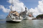 Am nächsten Morgen werden wir von der ankommenden Aranui geweckt. Der Riese fährt in den kleinen Hafen ein. Der Vergleich mit einem Elefanten in einem Porzellanladen ist noch stark untertrieben. Keine fünfzig Meter von der Outer Rim entfernt wird das Schiff vertäut. Zwei Frauen in bunten Gewändern, mit kunstvoll geflochtenen Blümenkränzen auf dem Kopf begrüßen die Passagiere. Im ganzen Dorf herrscht allgemeine Aufregung. Obwohl für den Morgen ein Gemüsemarkt angesagt ist, findet Natalya im Dorf kein Gemüse. Keiner hat heute Zeit für so etwas. Stattdessen werden überall Tische mit lokal wirkendem, aber scheinbar ganz woanders industriell hergestelltem Schmuck aufgebaut. In der Markhalle werden Tische gedeckt.