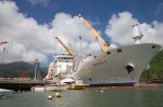 In ganz französisch Polynesien gibt es einen einzigen Hochseehafen, und zwar in der Hauptstadt Papeete auf Tahiti. Nur hier kommen importierte Waren an, und das sind fast alle Verbrauchsgüter und eigentlich alle Investitionsgüter – von Milch und Mehl über Nudeln und Kleidung bis Computer und Autos und natürlich Treibstoff. Praktisch alles, was die Menschen hier neben Kokosnüssen, Eiern und Früchten brauchen, wird aus dem Ausland beschafft. Die Waren kommen per Frachter in Papeete an und werden dann auf kleinere Versorgungsschiffe verladen, die dann auf meist festen Touren die kleinen Inseln anlaufen. Unter oft abenteuerlichen Bedingungen werden die Waren dort entladen.