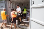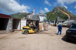 Sobald das Schiff sicher liegt, fängt man an Container zu verladen. Die Waren werden gleich an Ort und Stelle sortiert. Von der ganzen Insel kommen Autos an, um ihre Bestellungen und Sendungen abzuholen. Hunderte von Menschen wuseln am kleinen Steg herum. Wer an Amazonservice gewohnt ist, kann sich das kaum vorstellen, dass die Lieferung, wenn es gut läuft, nichts verwechselt oder verloren geht, erst nach zwei oder drei Wochen ankommt. Hat man bei der Bestellung aus Taiti was vergessen, darf man weitere 2 bis 3 Wochen warten, bis das nächste Schiff kommt. Wobei es auf der Insel selbst außer einem eingeschränkten Sortiment an Lebensmitteln und ein paar Alltagsgegenständen nichts zu kaufen gibt.