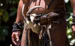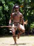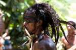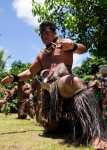 Thomas darf auf an Bord der Aranui und macht vom höchsten Deck aus ein Foto von der Outer Rim. Leider dürfen die Kinder nicht mit. Zum Unterhaltungsprogramm der Kreuzfahrtgäste gehört unter anderem eine Tanzvorführung im Dorf, an der wir gerne teilnehmen. Vor allem Männer sind sehr eindrucksvoll tätoviert und geschmückt: mit Knochen, kleinen Schädeln und trockenem Gras. Sie tanzen mit so viel Inbrunst, dass Arvid an manchen Stellen überlegt, ob er sich nicht lieber unter der Bank verstecken sollte. Im Gegensatz zu den Männern wirken die singenden Frauen mit ihrem anmutigen Tanz sehr friedlich und sanft.