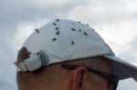 Neben einer Menge Vögel erleben wir noch eine andere Tierart in Massen. Hat uns auf Makemo nur ab und zu mal eine Fliege an Bord besucht, kommen diese Plagegeister auf Tahanea gleich zu Hunderten zu uns an Bord. Nervig ist das vor allem am Morgen, wenn die Insekten bei Sonnenaufgang aktiv werden und einen jeglicher Schlafmöglichkeit berauben. An Land ist man ständig am Verscheuchen der Fliegen, die sich auf die Arme und ins Gesicht setzen. Thomas Kappe hat is wohl besonders attraktiv. Dicht an dicht sitzen die Fliegen darauf. Man sieht, zu welcher Plage eingeschleppte Tierarten werden können. Hier haben sie keine Feinde, können sich uneingeschränkt vermehren. An Bord können wir uns wenigstens durch Fliegengitter an den Fenstern und ein Fliegennetz am Niedergang (seit Villamil auf den Galapagos nicht mehr benötigt) schützen.