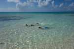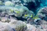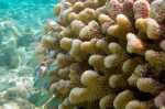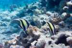 Selbst Arvid, der huckepack mit Thomas schwimmt, erlebt Horden von großen, blau schimmernden Papagaeienfischen, schwarz-weiß gestreiften Halfterfischen und jede Menge kleinere, die sich um die Korallenköpfe tummeln. Vor den Korallen hat der kleine Kerl anfangs Angst: wer weiß, ob so was beißen kann? Aber nach einiger Zeit verschwindet die Angst und Arvid kann in Ufernähe auch alleine schnorcheln. Gerne hält er sich jedoch, wenn wir weiter raus schwimmen, an der Badehose von Thomas fest. Die Fische scheinen sehr ortsfest zu sein. Geht man am nächsten Tag an der gleichen Stelle schnorcheln, findet man die selben Fische wie am Vortag.