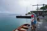 Das Wetter verschlechtert sich, leichter Regen setzt ein. Wir sind so von der Hitze verwöhnt, dass wir ihn erst gar nicht ernst nehmen und uns unter Büschen verstecken. Franka und Vsevolod gehen gar nicht aus dem Wasser aus, und bauen unter Wasser im Regen aus Korallenblöcken ein Hotel für obdachlose Fische, um sie beim Einziehen zu beobachten. Im Wald gibt es mehr Schutz, aber dort wimmelt es von Mosikitos. Nach einer halben Stunde sitzt Natalya unter einem tropfenden Busch mit zitterndem Arvid auf dem Schoß. Das Ende des Regens ist nicht abzusehen. Nachdem wir genug gefroren haben steigen wir ins Dinghy und fahren durch den kalten Wind und Regen zu Outer Rim zurück. Obwohl wir uns in den Tropen befinden, kommen uns die Erinnerung an den Gletscherbesuch im Wind und Regen in der Caleta Mist in Patagonien.