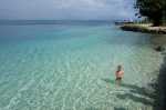 Nach einigen Tagen gelingt es Thomas die Crew zu überzeugen, dass es im Süden der Insel einen weiteren schönen und besser gegen Wind geschützen Ankerplatz gibt. Nur muss man an manchen Flachstellen vorbei, der Weg dorthin sei betont. An den flachen Stellen stellt Natalya sich wieder an den Bug und hält Ausschau. Doch die Beurteilung, ob die durch das klare Wasser durchscheinenden Steine und Korallen tief genug liegen fällt, ihr alles andere als leicht. Nach der letzten Flachstelle atmet wir auf. Immerhin haben wir an der flachsten Stelle nur ca. 1 Meter Wasser unter dem Kiel.