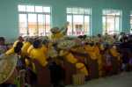 Wir laufen einmal durch den Ort Fare, dessen größte Sehenswürdigkeit ein ordentlicher gut bestückter Supermarkt darstellt, in dem sogar frisches Gemüse zu finden ist. Unsere Kinder merken sich den Strand vor und wollen am Nachmittag mit Badeklamotten noch mal hierher. Natalya und Thomas bummeln noch durch den Ort Fiti an unserem Ankerplatz. In der Kirche scheint es ein großes kirchliches Fest zu geben, das alles andere als traditionell aussieht. Die nicht so kleine Kirche ist rappelvoll. Alle Gottesdienstbesucher scheinen einer von mehreren Gruppen zuzugehören. Jede Gruppe trägt charakteristische aufwendig gestaltete sehr farbenfrohe Tracht. Zum Frauentracht gehört ein zierlicher Sommerhut, der einem das Gefühl der pariser Sommermode Anfang des letzten Jahrhunderts vermittelt. Abwechselnd singen die Gruppen immer wieder sich wiederholende Strophen. Die Atmosphere ist locker ab und zu stehen die Teilnehmer auf und gehen, genauso entspannt kehren manche zurück und setzen sich wieder hin. Einige Frauen betreuen vor dem Eingang eine große Kinderschar. Obwohl wir eine Kamera in der Hand haben und nicht wirklich passend für einen sontäglichen Kirchengang angezogen sind, werden wir freundlich hereingewinkt.