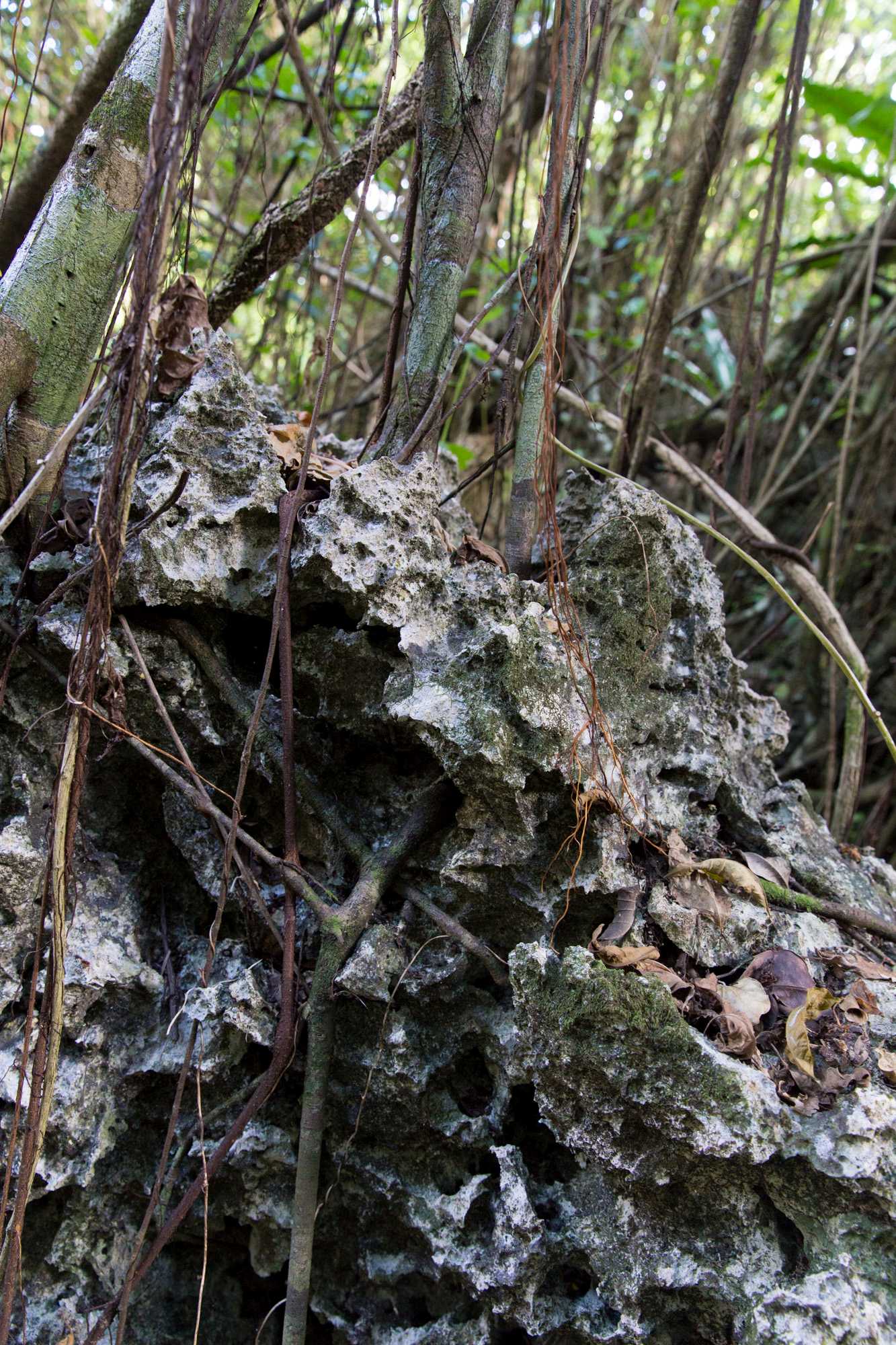 Pflanzen wachsen durch die Korallenfelsen hindurch