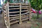 Arvid setzt sich neben die wartenden Schulkinder ins Gras. Nicht weit davon steht ein Käfig mit einer schwarzen Sau. Vor dem Haus sind auch andere Gaben ausgebreitet, die zu den Willkommensgrüßen einer königlichen Person gehören: ein großer Berg an Yamswurzeln, alte Mehlsäcke, aus denen Schwanzflossen ordentlich großer Fische heraus schauen. Die Art die Gaben zu präsentieren scheint nicht wirklich wichtig zu sein: schön eingepackt und eingewickelt sind sie nicht. Nur der Inhalt zählt.