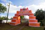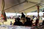 Die Tage darauf treffen wir immer wieder auf marschierende Schulkinder, spielende Blaskapellen und andere festliche Veranstaltungen. Für die Geburtstagsfeier sind Gäste von vielen anderen Inseln mit einer Fähre eingereist, übernachten in öffentlichen Gebäuden und auf Matratzen in Privathäusern. Auf einer der Wiesen im Ort findet ein Festessen statt. Die Gäste tragen wie immer zu festlichen Anlässen eine Bastmatte um die Hüfte. Die Tische sind schön mit Fruchtgestecken geschmückt. Doch auch hier ist nur die uns schon bekannte Prinzessin zu sehen. Der König bleibt weiterhin im Verborgenen. Das lässt erahnen, dass er die ganze Aufregung um seine königliche Person nicht wirklich gerne hat.