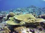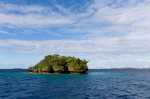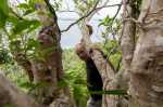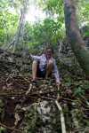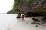 An diesen Strand will keines unserer Kinder mehr. Natalya und Thomas versuchen noch zum Gipfel der relativ hohen Insel zu gelangen. Laut unseren Infos führt dorthin ein einigermaßen erkennbarer Pfad. Doch den finden wir nicht und versuchen uns querfeldein durch den dichten Dschungel zu kämpfen. Nach einigen hundert Metern wird der Hang sehr steil. An manchen Stellen ziehen wir uns an den überhängenden Bäumen hoch. Das Korallengestein ist spitz und scharf. Die als leicht geplante Wanderung artet in eine abenteuerliche Expedition aus. Trotzt aller Mühe gelingt es uns nur begrenzt den Blick von oben zu genießen. Die Kuppe ist relativ flach, viele Bäume verdecken die Sicht. Nur ab und zu bekommen wir ein kleines Fenster, durch das wir das Panorama erspähen können.