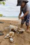 Als Arvid und Vsevolod am nächsten Tag zurückkehren, um den Schuh zu suchen, werden sie schon am Steg von drei Hunden hysterisch angebellt. Während sich Vsevolod standhaft vor den Hunden hinstellt, rennt Arvid los, die Hunde selbstverständlich hinterher. Arvid schreit vor Angst, der Hundebesitzer, der keine zehn Meter weit weg von ihm steht, macht nichts um die Hunde zurückzupfeifen. Als Thomas an Steg ankommt, knurrt er ihn an, der Steg sei privat. Man fragt sich nur, welche Schätze das Hotel an diesem Strand hortet. Wir haben in Tonga in der Nacht das Boot nie richtig abgesperrt, das Dinghy war oft genug über Nacht im Wasser. Nie haben wir gehört, dass etwas gestohlen wurde.