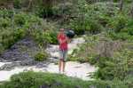 Die Wanderung quer durch die Insel zum anderen Ufer ist nicht so spannend. Die Vegetation ist stark verändert: unzählige Kokospalmen, kaum andere Bäume. Die Insel gilt zwar – bis auf ein Resort – als unbewohnt, wird aber offensichtlich landwirtschaftlich benutzt. Einige Tierpfade führen durchs Unterholz: Schweine und Ziegen werden sich selbst überlassen. Erst wenn die Familie Fleisch zu einem festlichen Anlass braucht, werden die Tiere eingefangen und nach Hause gebracht.