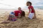 Am nächsten Tag erkunden wir das nahe gelegene unbewohnte Inselchen Nukunamo. Unsere Kinder finden dort perfekten Sand zum Burgen Bauen und veranstalten einen Wettbewerb für die schönste Burg. Währenddessen gehen Natalya und Thomas am Strand spazieren und finden unzählige Muscheln und Schneckenhäuser, eines schöner als das andere. Nach einem ausgedehnten Spaziergang steht die Sonne schon tief, wir müssen zurück zu Outer Rim, bevor es dunkel wird.