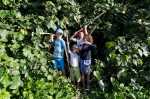 Ein Zaun versperrt uns den weiteren Weg in den Wald. Privatgrundstück? Die Bewohner erklären uns, dass der Zaun die im Dorf frei laufenden Schweine von den Obst- und Gemüsefeldern im Wald fern halten soll. Von einem der Felder kommen uns ein paar kleinere Kinder entgegen. Sie haben so große und scharfe Macheten in der Hand, die in Deutschland nicht jeder Mann anfassen würde ohne den Bedenken zu haben, sich mit einem ungeschickten Schlag einen Finger abzuhacken.