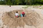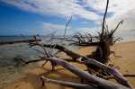 Die nächsten Tage verbringen wir vor dem traumhaften Strand von Uoleva. Die Bucht ist relativ rein, so können wir unweit des Strandes ankern und liegen sehr ruhig. Während die Kinder Sandburgen fast in Lebensgröße bauen, laufen Natalya und Thomas am Strand entlang. Die Füße versinken tief im weichem weißen Sand. Das Wetter verschlechtert sich, aber bevor die Sonne endgültig hinter dem gräulichen Wolkenschleier verschwindet, bleibt uns noch Zeit ein paar schöne Bilder von der Insel zu machen. Die dicken Wolken am Horizont verschaffen Kontrast und lassen das türkisfarbene Wasser im Sonnenlicht noch intensiver aufleuchten.