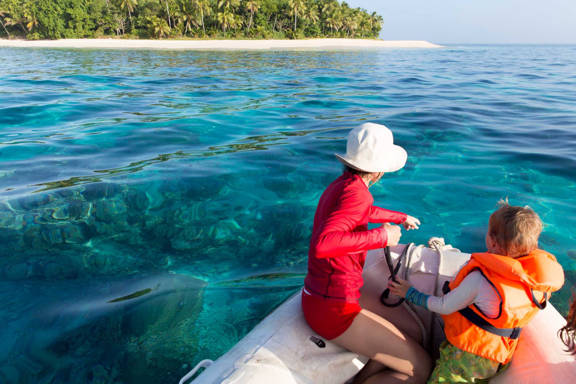 Korallen direkt am Dinghy