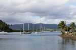 Die Beamten interessieren sich auch nicht für Wein oder frisches Gemüse im Kühlschrank. Nachdem ein Stapel Papiere ausgefüllt ist, sind wir mit Formalitäten fertig und können uns eine Boje im Hafen aussuchen. Wir schauen uns skeptisch eine an, die so voll mit Muscheln bewachsen ist, dass sie sich nicht mehr aus dem Wasser ziehen lässt, nehmen dann die nächste. Stellen fest, dass wir zu nah an dem benachbarten Segler liegen, werfen die Leine los und fahren Kreise. Aber alle der ziemlich chaotisch ausgelegten Bojen erscheinen uns viel zu eng aneinander gedrängt. Nach einigen Kreisen kehren wir doch zur ersten Boje zurück. Wird schon gutgehen …
