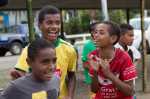 Fidschi ist das erste melanesische Land auf unseren Route. Obwohl uns von Tonga nur wenige Hundert Meilen trennen, treffen wir hier auf ganz anders aussehende Bewohner und auch auf eine ziemlich andere Kultur. Während in Tonga fast alle Frauen ihre langen schwarzen Haare zu aufwändigen Frisuren hochstecken, haben die Melanesier ihre Haare gerne kurz. Kein Wunder, die kleinen Locken kann schon bei moderater Länge kein Mensch durchkämmen. Obwohl ihre Hautfarbe wesentlich dunkler ist, mindestens so dunkel wir die der Westafrikaner, haben manche Kinder fast blonde Haare. Die Kombination sieht ziemlich ungewöhnlich aus. Beim ersten Mal denkt man an Bleichmitteln, bei nächsten an den kaukasischen Blutanteil, spätestens bei der ersten Kinderschar fragt man sich doch, dass sie nicht alle ihre Haare gefärbt haben können.