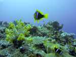 Die Plänen für die neue Marina sind gewaltig. Die Tage des Moorngsfeldes in dem wir liegen sind gezählt. Stattdessen soll hier eine neue, zyklonsichere Marina entstehen. Dafür muss nur eine halbe Insel weggebaggert werden, ein großes Mangrovenfeld inklusive. Die angrenzenden Grundstücke für Geschäfte sind noch zu haben. Wahrscheinlich gar keine schlechte Investition, abgesehen von immensen Schaden für die Natur. Denn die Insel hat nicht nur Ruhe und Entspannung zu bieten. Beim Tauchen direkt vor einem hochpreisigen Resort entdecken wir eine phantastische Unterwasserwelt. Aus den Tiefen des Ozeans ragen hier so genannte Pinnackels aus. Diese relativ kompakte Unterwasserberge befinden sich mitten im unendlichen blauen Nichts und ziehen große Mengen an Meeresbewohnern an. Haben wir auf den Tuamotus und in Tonga viele Steinkorallen gesehen, entdecken wir hier für uns neue Arten von Weichkorallen. Manche sind ledrig und erinnern an Kopfsalat, andere wachsen wie kleine zarte Bäumchen auf den Steinen. Ihre Zweige bewegen sich sanft in der Strömung. Die Farben sind prächtig: intensives rot, gelb, blau, violett. Vor allem nah an der Spitze in 10-15 Metern Tiefe tummeln sich die meisten Fische. Taucht man tiefer, findet man die fäszinierenden großen filigranen Fächer der Gorgonien.