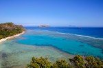 Wir nutzen die Zeit, um auf den steilen Hügel am Eingang der Bucht zu steigen. Der Ausblick ist spektakulär. Nur leider spielt die Sonne mit uns verstecken, daher möchte Thomas am Tag darauf für ein schönes Bild noch mal auf den Ziegenpfaden hochklettern. Dank des entspannten Tagesablauf finden wir Zeit unseren Tauchkompressor auszupacken und gehen damit Schnorcheln. Wie vielerorts in Fidschi treffen wir auch in Nevadra auf eine artenreiche Unterwasserwelt. Der Kompressor erlaubt uns auf 5-7 Meter zu tauchen, das ist eh die Tiefe in der man die meisten Rifffische findet. Ein Fischerboot beobachtet unsere Schnorchelversuche mit Interesse. Sie hätten auch nichts dagegen, so ein Teil zu haben. Stundenlang liegen sie hier vor Anker, um in der Nacht auf Fischjagd zu gehen. Da muss man Geduld haben: stundenlang in einem kleinen auf dem Schwell tanzenden Boot zu sitzen und auf den Sonnenuntergang zu warten.