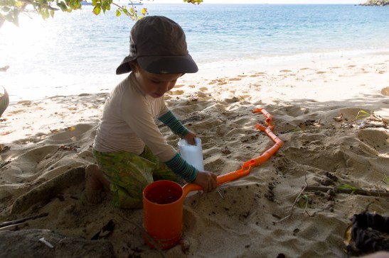 Arvid spielt mit seinem Rohrsystem