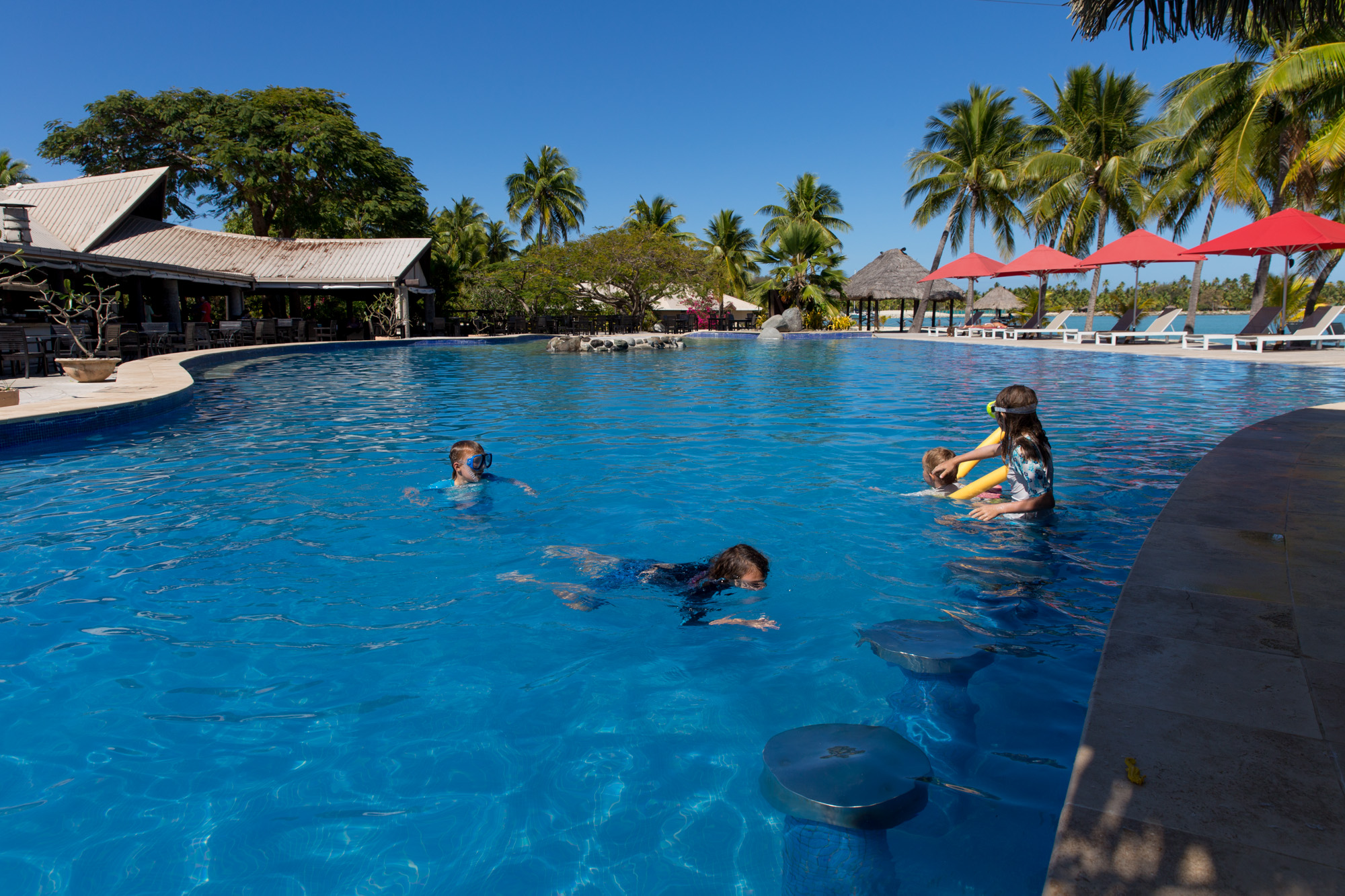 Die Kinder sind kaum aus dem Wasser zu bekommen