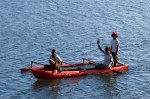 Am frühen Nachmittag folgen wir der Einladung von David. Für seinen Yachtclub hat er ein solides Gebäude errichtet, das noch nicht ganz komplett ist. In Zukunft erhofft er sich, ein paar Touristen eine Übernachtung anbieten zu können. Nicht weit des Yachtsclubs hauen zwei Männer mit einfachen Werkzeugen ein neues Kanu aus einem Baumstamm. Es sieht nach einer Menge Arbeit aus. Gestrichen halten die Boote etwa sechs Jahre aus, ohne Farbe etwas weniger. Die Kunst der Herstellung wird von Generation zur Generation weiter gegeben. Die geeigneten Bäume wachsen nicht weit des Strandes.