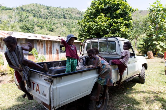 Kinder klettern auf unserem Pick-up