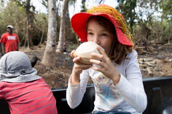 Ein Schluck Kokoswasser direkt aus der Nuss