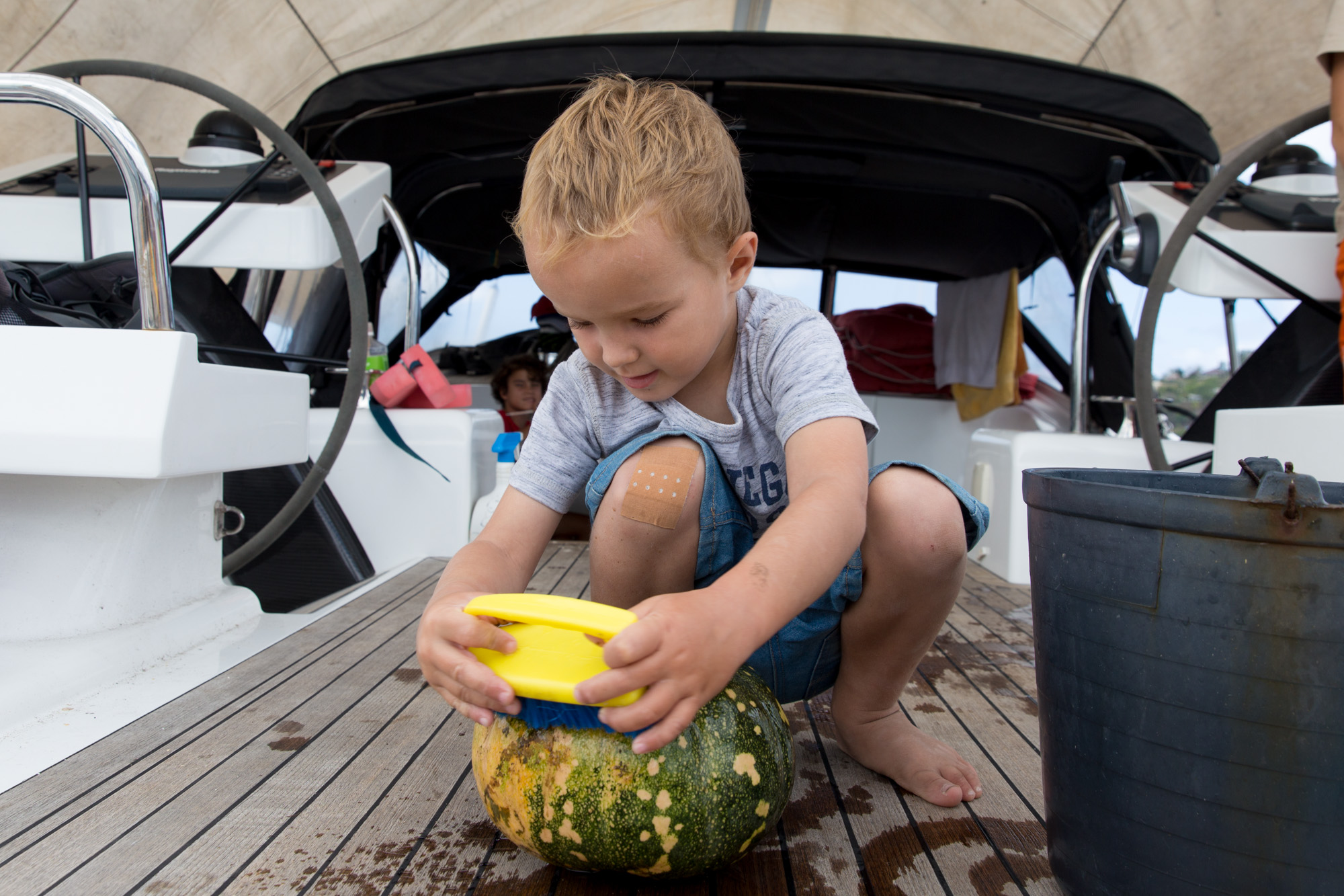Gemüse wird als Schutz vor Ungeziefer gewaschen und gebürstet
