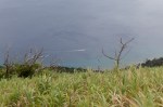 Von oben eröffnet sich uns ein Blick auf das Meer und die nahe liegende Insel Efate. Unser Guide erklärt uns, dass alle Besorgungen mit einem kleinem Motorboot erledigt werden. Bei gutem Wetter dauert die Fahrt kaum eine halbe Stunde, bei schlechtem kann so eine Fahrt schon ruppig werden und deutlich mehr Zeit in Anspruch nehmen. Für einen kurzen Augenblick zeigt sich die Sonne, und das Wasser leuchtet sofort türkis auf. Zu unseren Füßen liegt ein alter Vulkankrater. Er ist flach und breit und hat eine ähnliche Form wie Mount Yasur, nur spukt er leider keine Lava mehr, und ist zwar hübsch, aber wenig spektakulär.