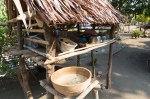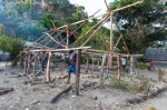 Am nächsten Tag laufen wir zum Dorf. Die aus wenigen traditionellen Bambushütten bestehende Siedlung ist überschaubar. Wir beobachten, wie Pfähle für ein neues Gebäude in die Erde geschlagen werden. Mehrere Männer packen bei der schweren körperlichen Arbeit gemeinsam zu. Ibrahim ist nicht da. Wir sprechen mit seinem Bruder Thomas über das Leben im Dorf. Der scheint ein geistlicher Führer der Gemeinde zu sein und zeigt uns seine kleine Kirche. Christliche Werte bedeuten ihm sehr viel. In dem kurzen Gespräch geht er extra darauf ein, dass er hier keine Schwarzen und Weißen oder Reiche und Arme sieht. Alle seien für ihn Menschen, die vor Gott alle gleich sind. Thomas erzählt zwar auch, dass er, um seine drei Kinder in die Sekundärschule zu schicken, jedes Trimester sehr viel Geld auftreiben muss, es kommt aber keine Beschwerde, dass es unzumutbar sei oder dass die Regierung etwas ändern müsse, und erst recht keine Bitte an uns um eine Geldspende für die Kinder wie bei unseren Freunden. Der Mann hat vielleicht kein einfaches Leben, aber er fügt sich mit Demut in sein Schicksal. Seine Ausstrahlung, seine Ruhe und Zuversicht beeindrucken uns sehr.