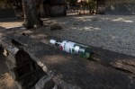 Bevor wir an Land gehen, beobachten wir mit Interesse ein kleines Auslegerkanu mit einem riesigen, sicherlich eine Tonne fassenden Wassertank zu den Katamaranen rudernd. Verkaufen die Einheimischen Wasser an die Segler? Während Thomas versucht unseren stotternden Generator zum Laufen zu bringen geht Natalya mit den Kindern an Land. Sie spielen ganz vergnügt am Strand, bauen aus einem unterspülten halb im Wasser liegenden Baum ein Haus mit Küche und Garten. Natalya geht ein wenig zwischen den Mangroven spazieren. Die Füße versinken ab und zu bis über den Knöchel im weichen Schlamm. Da wird schon nichts Böses drin leben. Die Insulaner laufen hier ja auch barfuß. Der Pfad verliert sich zwischen ein paar kleinen Gemüseparzellen. Fast alle kleinen Felder sind leer. Nur einige Bananenstauden tragen noch dürre Früchte. Hier finden wir sicherlich kein überragendes Angebot an frischem Gemüse.