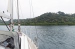 Auf dem kurzen Weg von unserem letzten Ankerplatz bei Awei sehen wir mehrmals Rücken und Schwanzflossen einiger Seekühe. Allerdings tauchen die scheuen Tiere sofort wieder spurlos unter bevor wir auch nur auf den Gedanken kommen können, den Foto in die Hand zu nehmen. In der Bucht angekommen, halten wir nach ihnen weiter Ausschau. Eigentlich soll es hier mehrere dieser Tiere geben. Ein ganzer Schwarm an silbernen kleinen Fischen kreist neben dem Boot und springt bei der kleinsten Wasserbewegung erschrocken in die Luft. Einige Reiher schauen interessiert zu, aber weit und breit kein Dugong. Natalya setzt sich am späten Nachmittag ins Dinghy in der Hoffnung, sich auf die leise Art an die Tiere anschleichen zu können. Das Wasser ist so undurchsichtig, dass sie nicht einmal die Seegraswiesen findet, wo sich die Tiere verpflegen sollen.