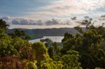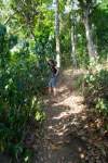 Auf einem gut erkennbaren Pfad laufen wir weiter ins Inselinnere, durch schönen tropischen Wald. Manche Bäume sind recht massiv. Wir erhoffen uns einen offenen Blick auf die Bucht und die Umgebung. Doch jedes Mal wenn wir höher kommen, versperren uns neue Äste die Sicht. Obwohl der Pfad uns noch weiter nach oben lockt, wollen wir unsere Kinder nicht zu lange warten lassen und kehren um.