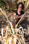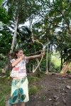 Unsere Kinder sind mit der ersten Waldlichtung zufrieden und spielen dort Indianer mit selbst gebastelten Pfeil und Bogen. Wir folgen den Stimmen im Wald und treffen eine junge Frau mit zwei Kindern. Sie sind mit der Ernte von Kokosnüssen beschäftigt. Als wir nach einer Siedlung fragen, erklärt uns die Frau, die nächste sei in zwei Stunden zu Fuß zu erreichen. Als wir ihr eine kleine Tüte an Kinderkleidung als Geschenk übergeben, pfeift sie ihre Jungs zusammen, damit sie uns als Dankeschön einen Bund Island-Cabbage ernten. Wir lehnen dankend ab. Solange wir nicht akut unter Skorbut leiden, müssen wir das nicht essen. Warum, das lest ihr in einem der folgenden Beiträge.