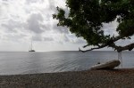 Während die Kinder am letzten Tag am Strand spielen, unterhält sich Natalya mit einer Frau am Strand, die auch Kinder hat. Da wir noch einige Tüten an Kinderkleidung an Bord haben, holt Natalya eine für sie. Eigentlich wollten wir die Sachen, die wirklich nicht im besten Zusand sind, nur verschenken, aber die Judith bittet uns, auf sie zu warten, und verschwindet im Dorf. Als sie zurückkommt, hat sie eine riesige Tüte mit frisch gepflückten Mangos in einer Hand und ein Bündel bohnenähnlichen Gurken in der anderen womit sie sich bei uns für die Kleidung bedankt. Scheinbar kommt vom Geld der ganzen Events um die Türme nicht viel bei der einfachen Bevölkerung an, wenn sie sich über ein Paar alte Schuhe und einige Jeans für ihre Kinder so freuen können. Als wir noch mit dem Obst und Gemüse in der Hand weiter mit Judith unterhalten, stellt sich uns eine weitere lokale Frau mit gutem English vor. Sie wohne einige Hundert Meter weiter entfernt am Strand und organisiere Führungen für Touristen. Direkt sagt sie uns das nicht, aber in ihrem Blick liest man es schon deutlich, dass eigentlich sie gerne unsere Tüte hätte. Was für eine Insel der korrupten Sitten!