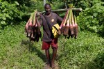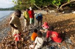 Am Abend sehen wir am Strand reges Treiben. Es werden Säcke mit Wasser-Taro und anderem Gemüse angeschleppt und aufgestapelt. Wir sprechen mit den Leuten und sie erzählen, dass sie ihre Produkte in Port Villa verkaufen. Dort lebt eine Frau aus ihrem Dorf und erwartet die Waren per Schiff. Für jeden Sack zahlen sie 1.000 Vatu für den Transport. Dann kommen noch Standgebühren und Unterkunft für die Frau dazu. Da bleibt dann kein großer Erlös mehr übrig. Aber eine andere Alternative haben sie nicht.