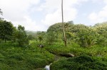 Zum Schluss geht es noch zum Sprungturm. Dieser steht an einem Hang auf einer Wiese. Wahrscheinlich ist es ein kleineres Exemplar, da wir seine Höhe auf etwa 10-12 Meter schätzen. Es hängen noch ein paar Lianen runter, aber natürlich springt keiner für uns. Dazu sind die Lianen jetzt viel zu spröde. Aber wir können uns wenigstens einen Eindruck von dem Ritual machen.