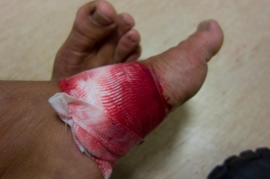 Fuß in der Notaufnahe (das Bild ohne Verband ersparen wir euch)